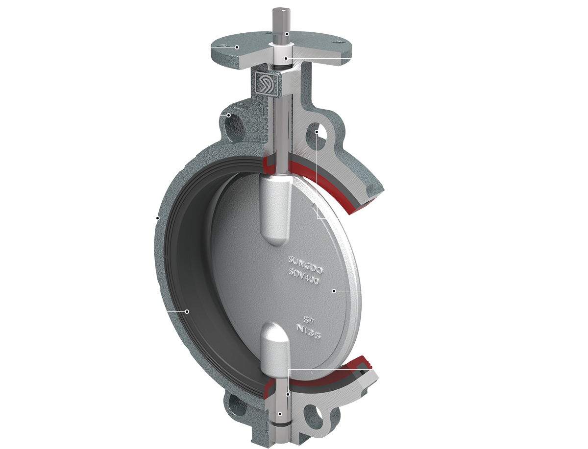 Dry-back seat for maximum corrosion resistance. Flow media are isolated from valve body, shaft and external parts.