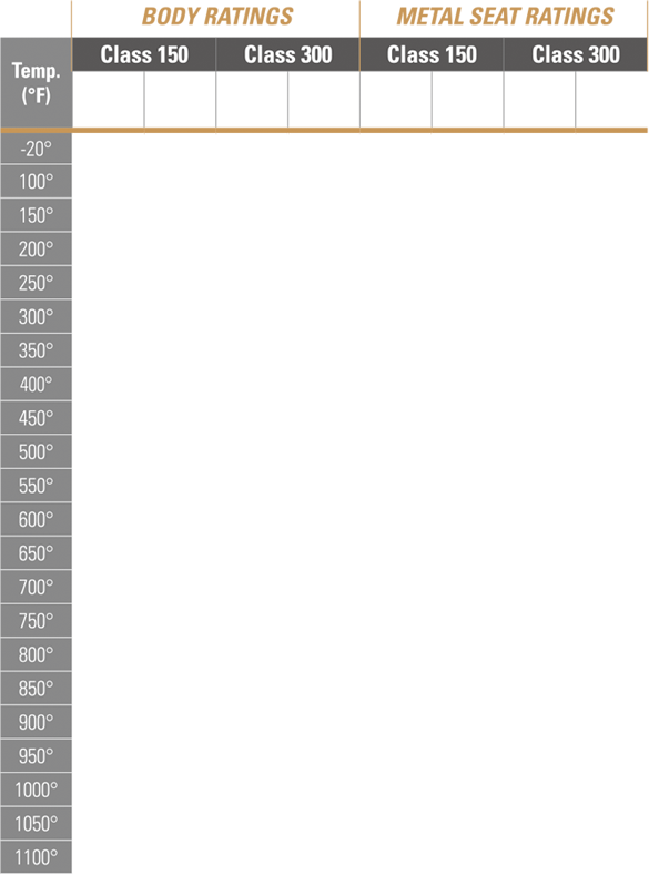 Inconel: -70°C ~ 593°C (-100°F ~ 1100°F)